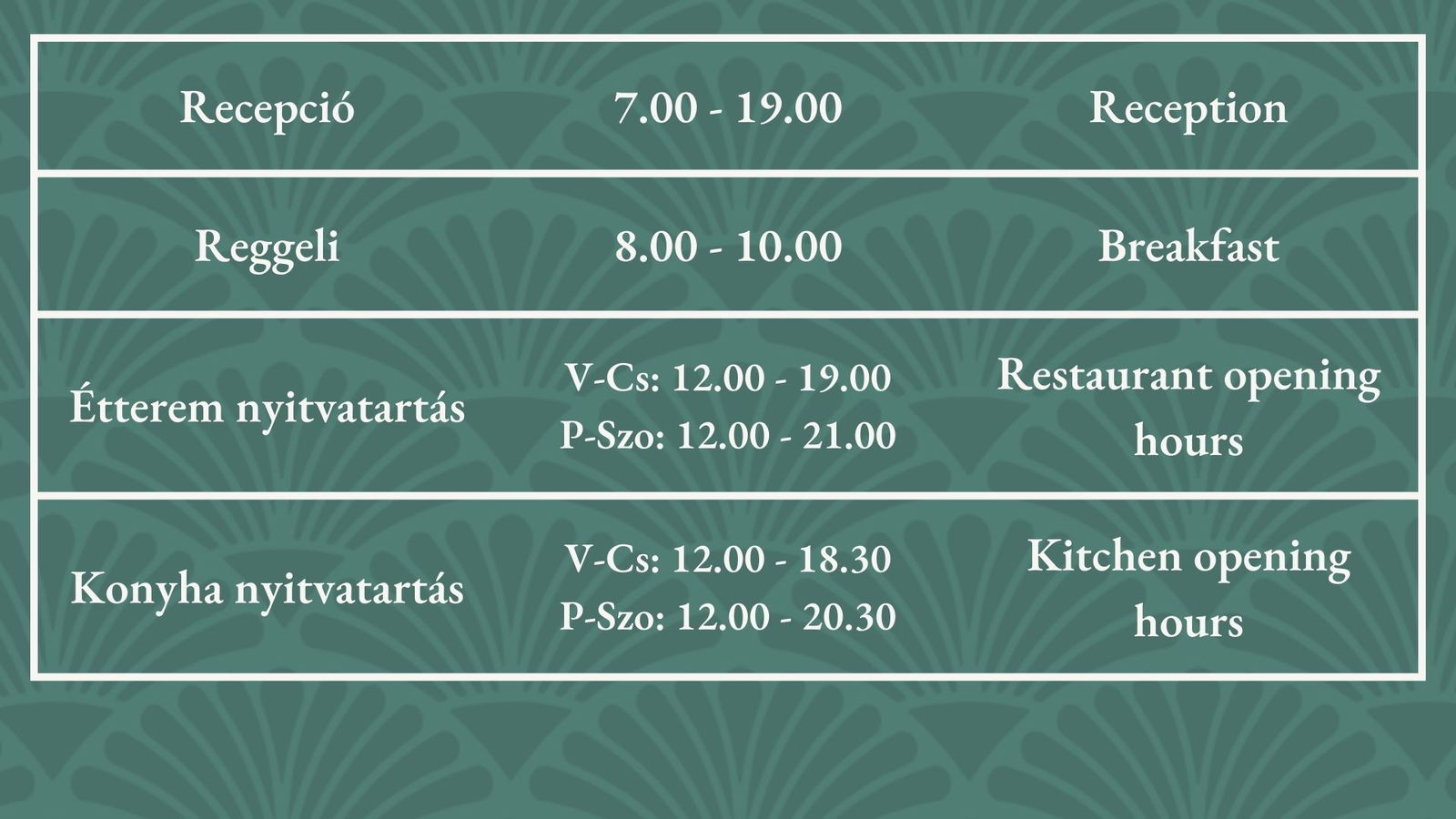 Asztalfoglaláshoz kérjük jelezze igényét a recepción.