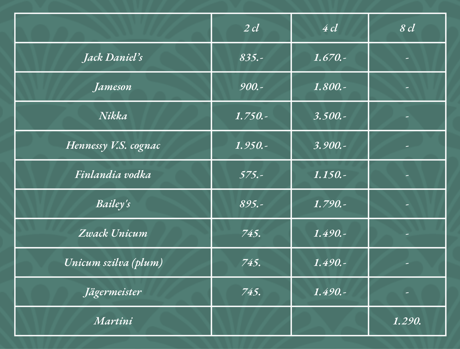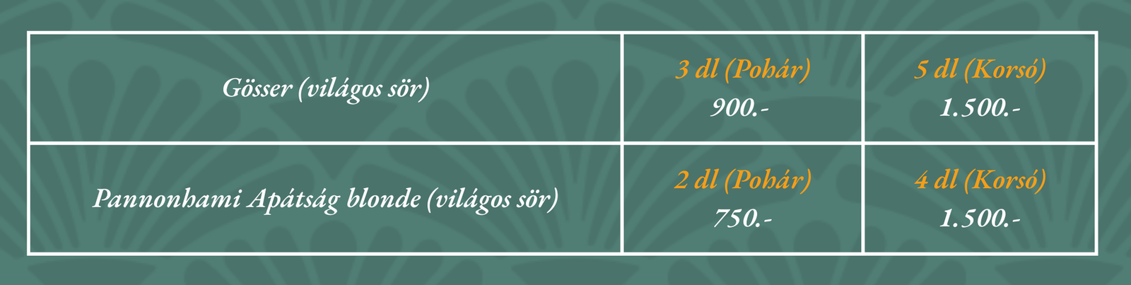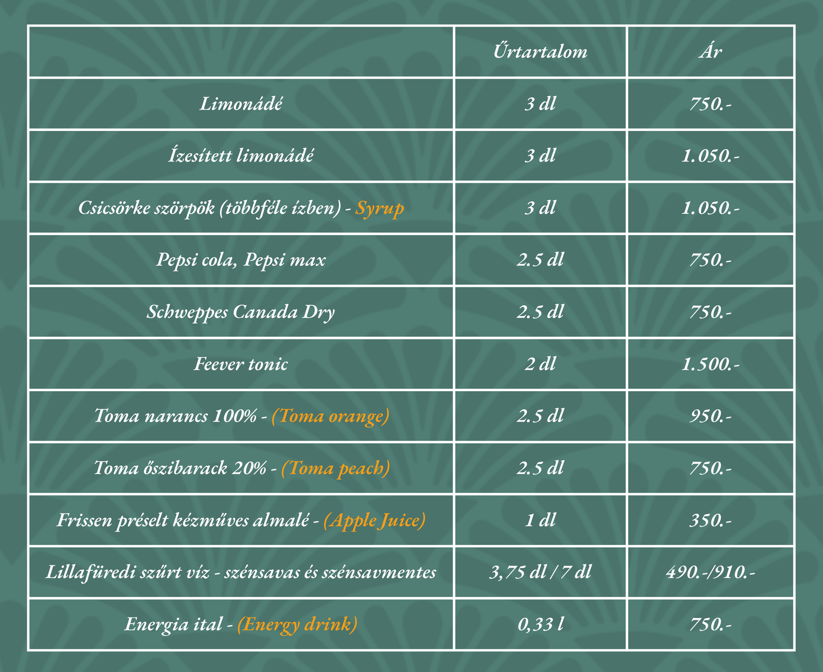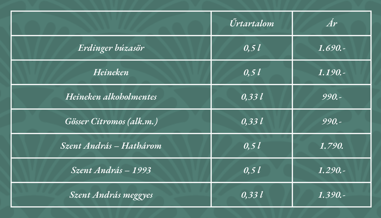 RÖVID ITALOK - SHORT DRINKSCSAPOLT SÖR - DRAFT BEERÜVEGES SÖRÖK - BOTTLED BEARKÁVÉ - COFFEEPURE PRÉMIUM TEÁK - PREMIUM TEASÜDÍTŐ, ÁSVÁNYVÍZ - SOFT DRINKS