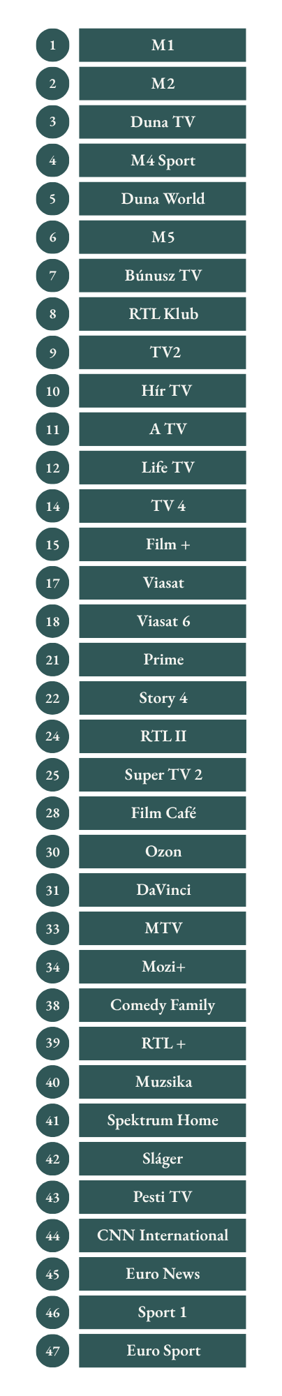 5 / Csatornát közvetlenül is válthat a számgombokkal. You can also select channels using the number keys. TV CSATORNALISTA / CHANNEL LIST